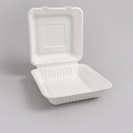 Sokeriruo’osta valmistettujen take away -rasioiden materiaali on tukevaa, minkä ansiosta laatikko sopii erinomaisesti ruoan kuljetukseen. Take away -rasioista on saatavana eri muoto- ja kokovaihtoehtoja. Ruokaa sisältävää rasiaa voidaan lämmittää mikrossa tai pakastaa. Pituus: 200 mm Leveys: 200 mm Paksuus: 75 mm Materiaali: Bagassi Myyntierä: Laatikossa 200kpl