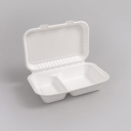Sokeriruo’osta valmistettujen take away -rasioiden materiaali on tukevaa, minkä ansiosta laatikko sopii erinomaisesti ruoan kuljetukseen. Take away -rasioista on saatavana eri muoto- ja kokovaihtoehtoja. Ruokaa sisältävää rasiaa voidaan lämmittää mikrossa tai pakastaa. Pituus: 250 mm Leveys: 165 mm Paksuus: 70 mm Materiaali: Bagassi Myyntierä: Laatikossa 250kpl
