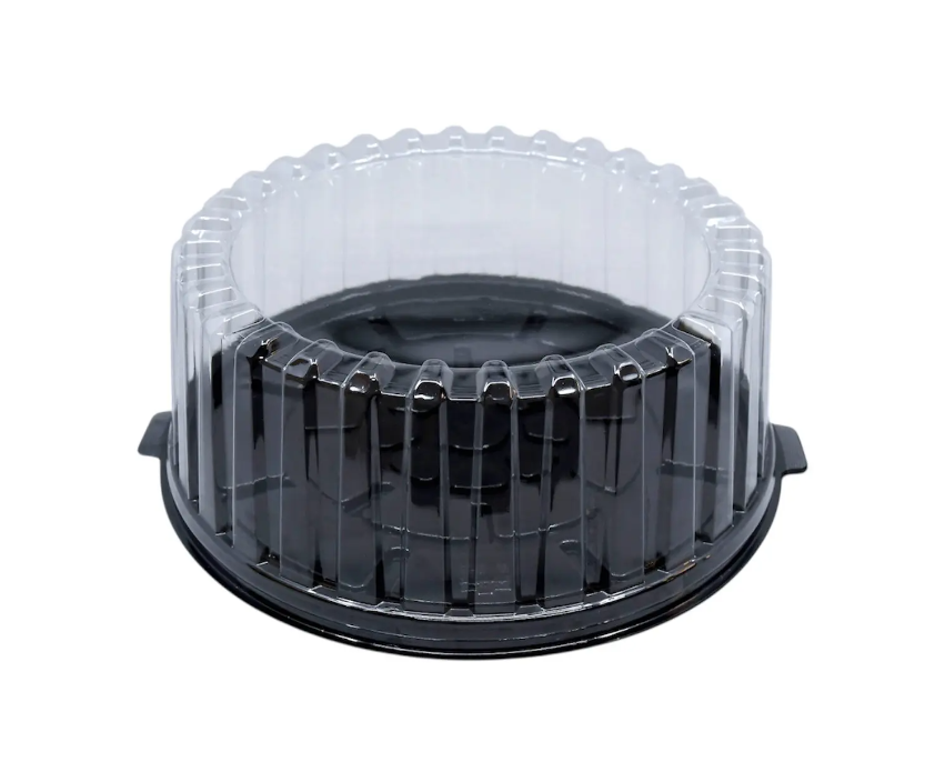 Kakkurasia kannella, PET halkaisija 240mm, kork. 117mm, 1kg, musta alusta, kirkas kansi, 10kpl